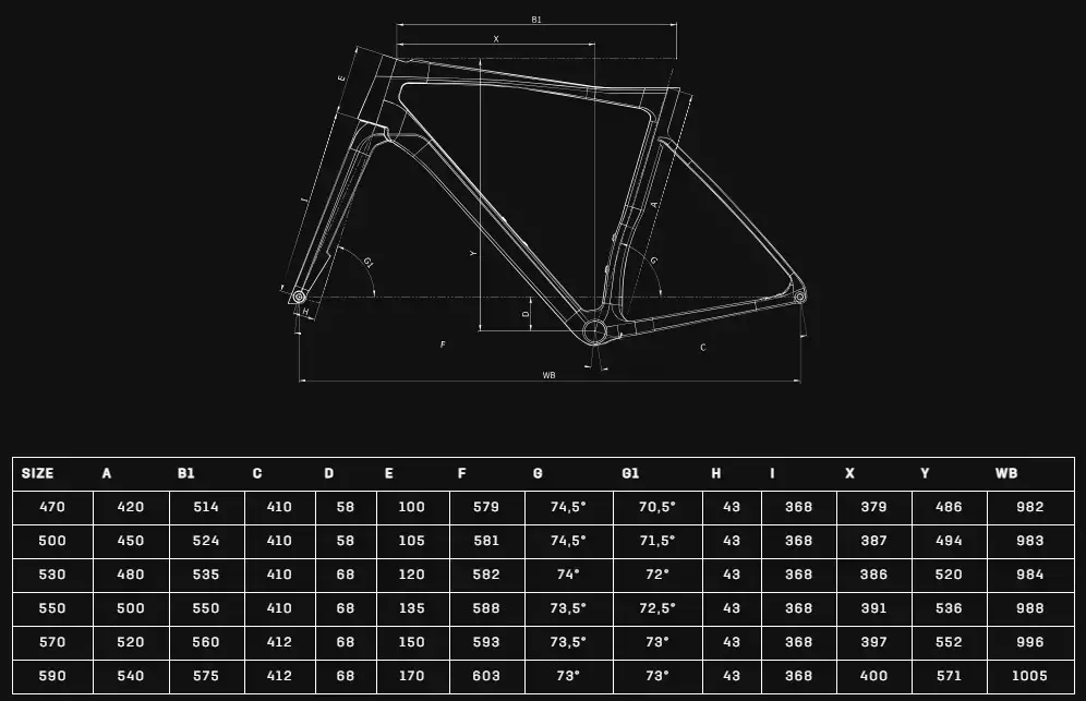 | Kadro | : | Specialissima PRO carbon HM with Bianchi CV System, only electronic groupsets, fully internal cable routing, headset Acros ICR, direct mount brakes, BB-PressFit 86,5x41 sizes 47-50-53-55-57-59cm |