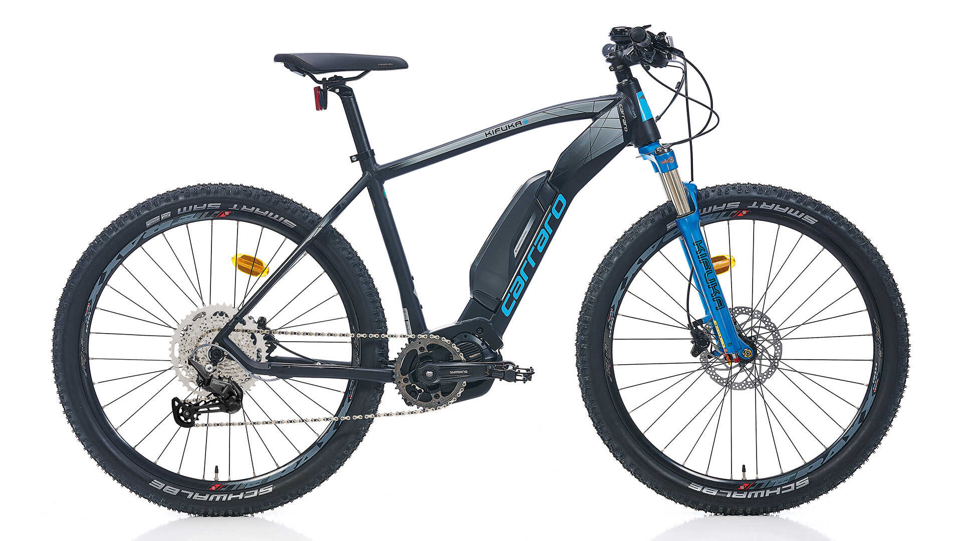 Shimano Steps E7000 güç ünitesinin kullanıldığı Carraro Kifuka 29 akıllı pedal desteği ile size 60NM güç ile destek olarak, E8010 bataryası ile ECO modda 100Km'ye kadar sürüş menzili sunuyor. En zorlu tırmanışların kolayca üstesinden gelebileceğiniz güç desteği yanında, dağ ve patikaların tadını sonuna kadar çıkartabilmeniz için Suntour XCR RL gidondan kilitli ve havalı amortisör mevcuttur. Kifuka 29'da vites sistemi olarak Shimano Deore 11'li (11-51T) sistem ve güçlü zemin tutuşu için Schwalbe Smart Sam lastikler ile 180mm rotorlara sahip Shimano MT400 hidrolik disk kullanılmıştır. Yüksek dayanımlı RODI TRYP 25 çift katlı alüminyum jantlar ile desteklenen Kifuka 29, sadece 2,5 saatte %80 doluluğa ulaşan bataryası ile doğada yol arkadaşınız olmaya her zaman hazır!