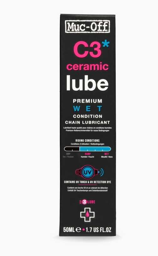 Muc-Off C3 Seramik Islak Zincir Yağının su geçirmezlik özelliği de tahrik zincirinizin en zorlu sürüş koşullarında bile mükemmel performans göstereceği anlamına gelir.