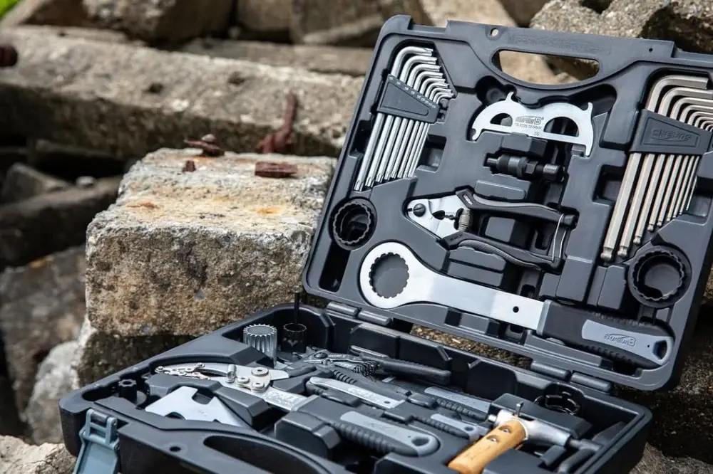 Sağlam taşıma çantası içinde düzenli olarak sunulan bu set, bisikletinizle ilgili her türlü sorunu çözmek için gereken donanımı tek bir kutuda toplar.