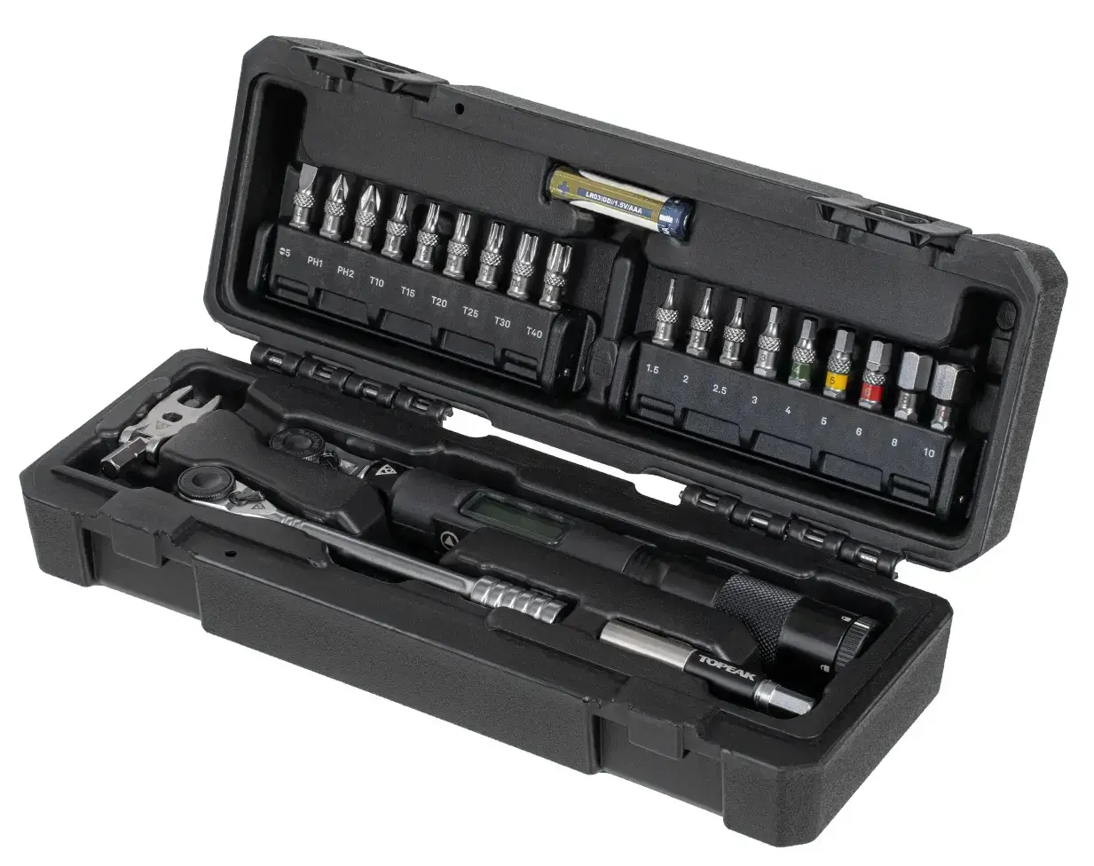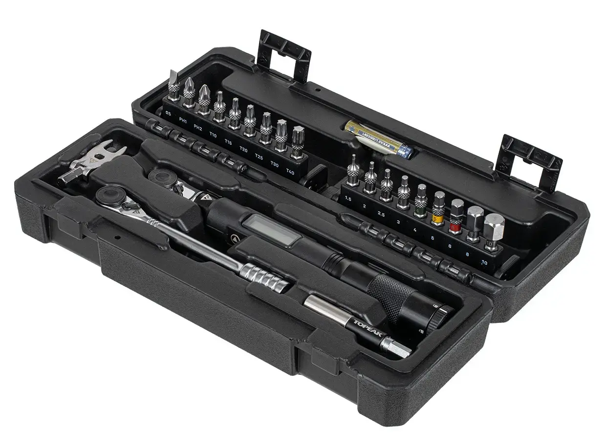 Torqstick Pro Digital, günlük bakım için olmazsa olmaz bir alet setidir. Çok yönlü set, yeni dijital tork anahtarı (1-20 Nm), güçlü bir Ratchet Rocket HD ve dokuz TORX® ve dokuz altıgen soket uçtan oluşan eksiksiz bir uç setinin yanı sıra bir uç uzatması ve bir kaz ayağı aparatı içerir.